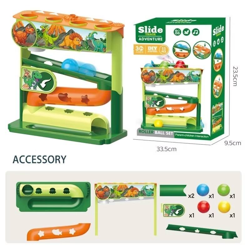 This toy is designed to support early childhood development by improving hand-eye coordination, fine motor skills, and concentration. As children interact with the slide and ball, they learn about motion, cause-and-effect, and basic problem-solving through play. The playful design keeps children engaged while promoting imaginative and active play.