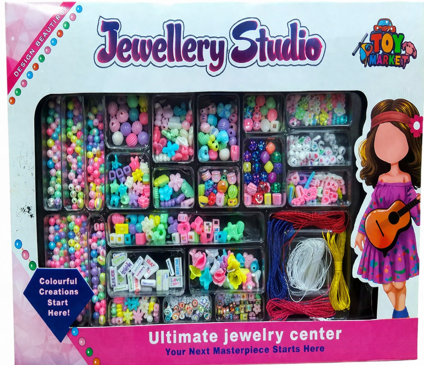 Unleash your child’s creativity with the Jewellery Studio DIY Beads Set, a complete jewelry-making kit designed for fun, learning, and artistic expression. This set includes a wide variety of colorful beads, alphabet beads, charms, threads, and accessories that allow kids to create beautiful bracelets, necklaces, and other handmade jewelry pieces.
