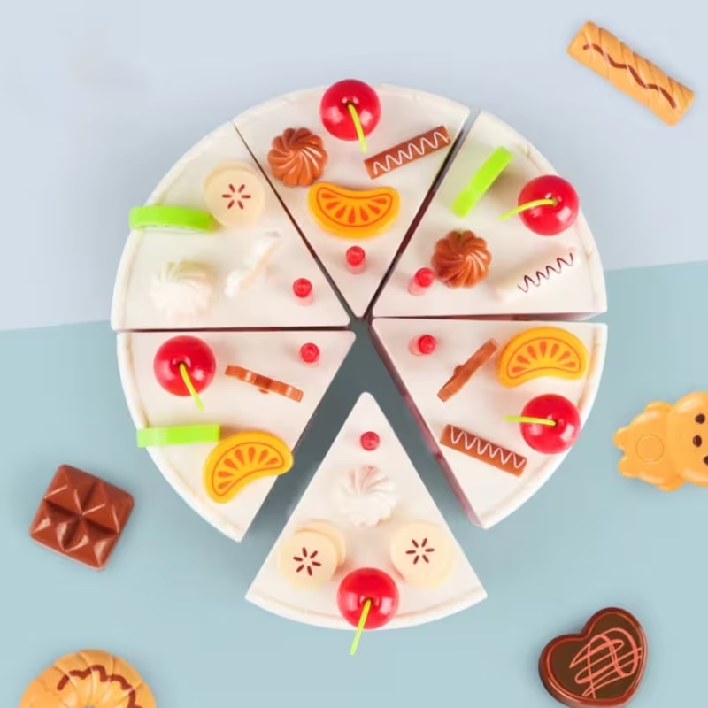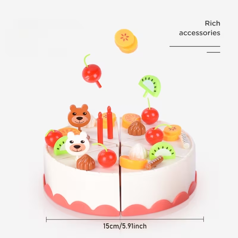 Children can enjoy slicing the cake pieces and decorating it again and again, which enhances their imagination and creativity. The realistic design makes it feel like a real cake, allowing kids to play bakery, birthday party, or kitchen games with friends and family.