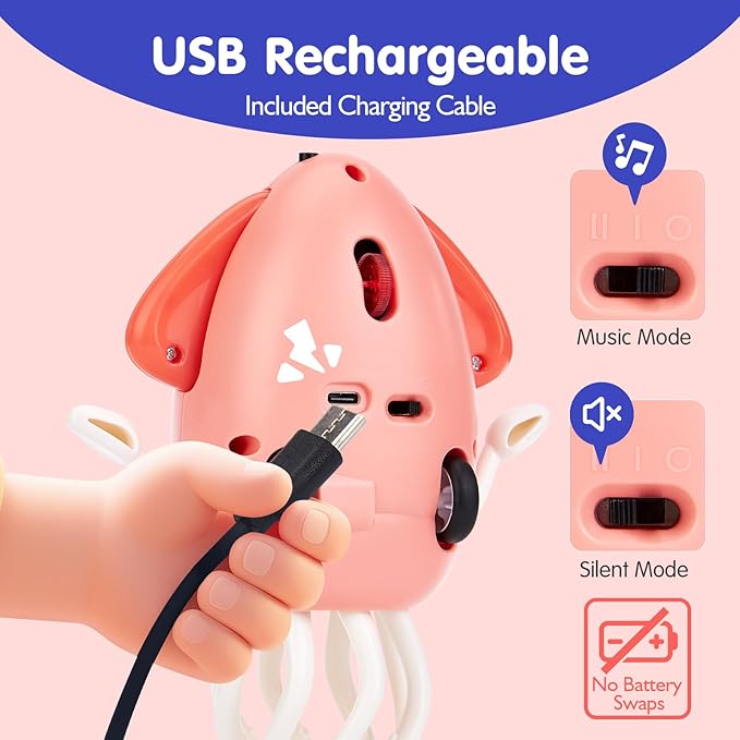 Crafted from high-quality, non-toxic materials, this octopus toy ensures safety and durability for everyday use. The soft tentacles move smoothly, creating a realistic crawling effect that fascinates young children. It also includes a USB rechargeable feature, making it cost-effective and easy to use without constantly replacing batteries.
