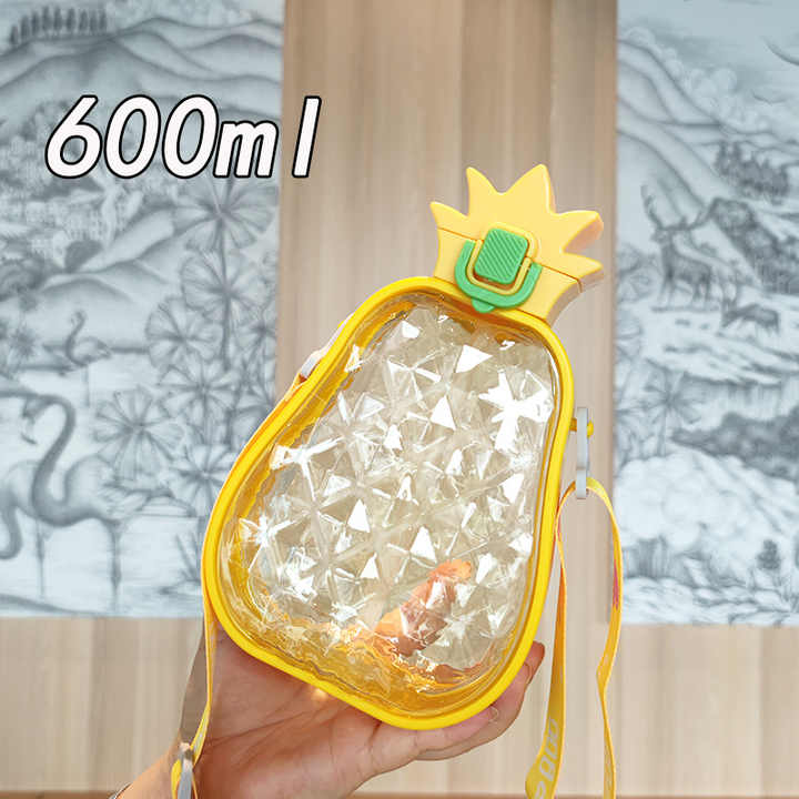 Add a playful twist to your hydration routine with this pineapple-shaped water bottle. Designed for both kids and adults, it features a creative transparent design that resembles a real pineapple, making it fun and eye-catching. Made from BPA-free, food-grade plastic, the bottle is safe, durable, and lightweight—perfect for daily use at school, work, or on the go. It includes a built-in straw and a secure flip-top lid to ensure leakproof drinking. The adjustable shoulder strap makes carrying easy and hands-free, ideal for travel, sports, or outdoor adventures. With a generous 600ml capacity, it holds enough water or juice to keep you refreshed throughout the day. Whether you’re gifting it or using it yourself, this unique bottle combines style, function, and portability in one fun package.
