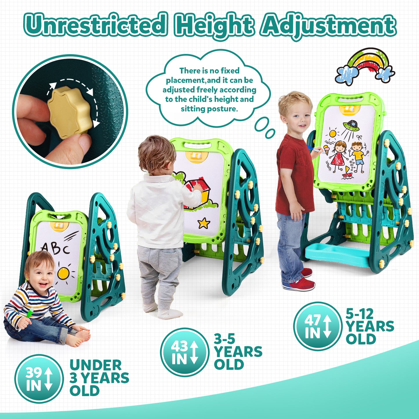 Constructed from high-quality, non-toxic plastic, this drawing board is safe, durable, and easy to assemble. Its stable design ensures it stays firm during use, while smooth edges protect children from injury.