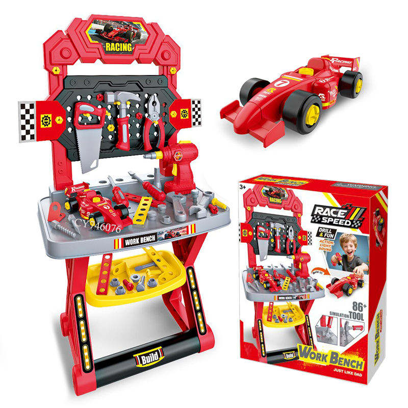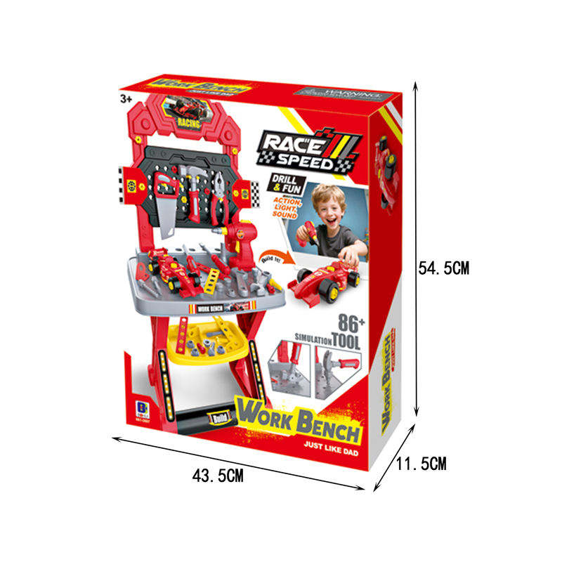 Let your child explore creativity and hands-on fun with this 86+ Pieces Tool Play Set with Workbench! Designed for young builders, this exciting set includes a realistic workbench station, a formula racing car, and an electric toy drill, giving kids a complete pretend-play workshop experience.