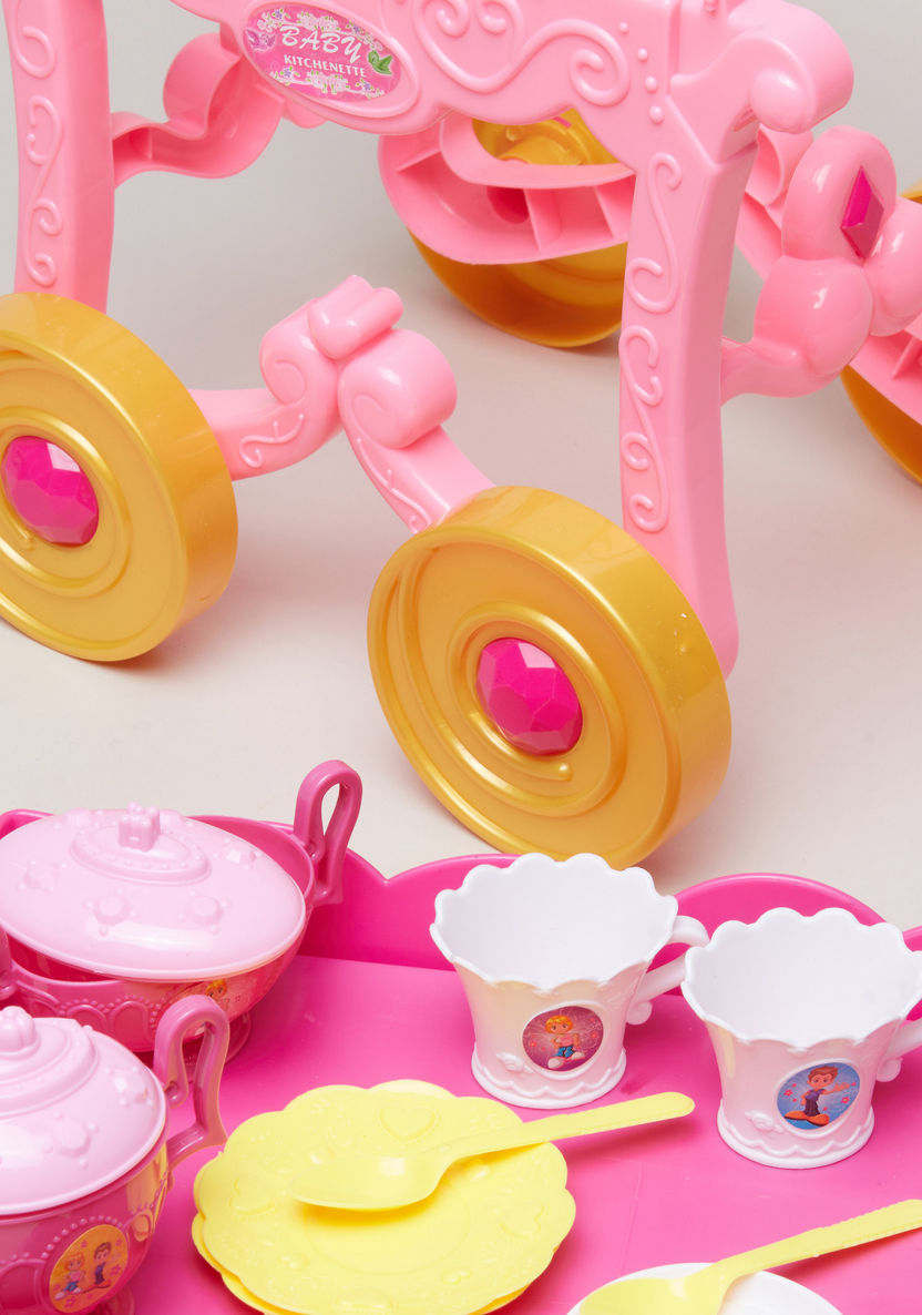 Introduce your child to the joys of pretend cooking and serving with this Kids Kitchen Set (49 PCS). Designed for kids aged 3 and above, this charming kitchen playset includes a full kitchen unit, utensils, pots, pans, and a beautifully designed tea trolley complete with various tea sets. The colorful and realistic design captures kids’ imaginations, making role-playing as a little chef or host extra exciting.