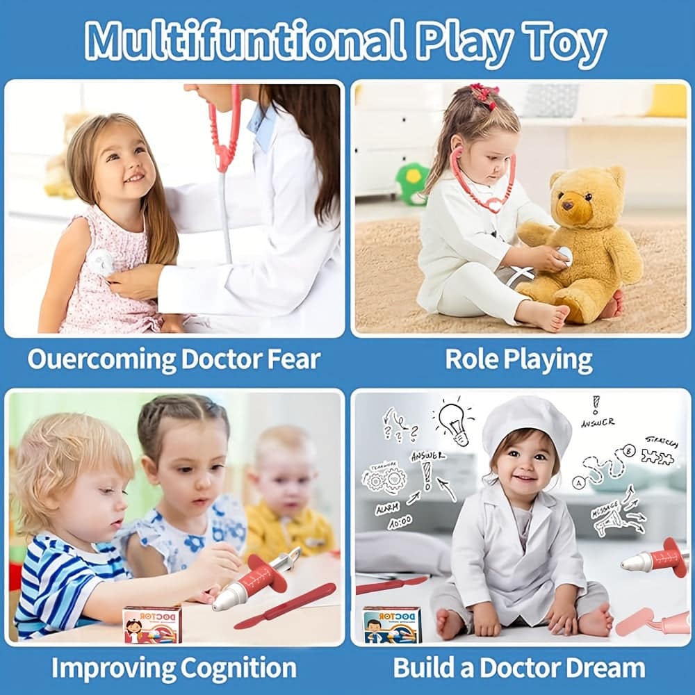 This role-play set not only entertains but also educates, encouraging kids to explore medical scenarios, practice empathy, and develop their fine motor skills. It’s a great way to reduce fear of doctor visits by familiarizing children with common tools and procedures. Bright colors and realistic shapes enhance imagination and creativity.