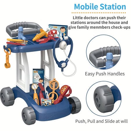 Introduce your child to the world of healthcare with the “I’m Little Doctor DIY Set” – a fun, hands-on toy designed for children aged 3 and above. Packed in a colorful 45cm tall box, this doctor cart playset includes all the essentials a little doctor needs: a stethoscope, thermometer, reflex hammer, scissors, clipboard, syringe, and more. The durable, wheeled trolley design allows kids to move their mini medical station from room to room for interactive play.
