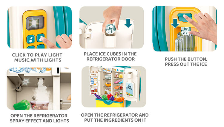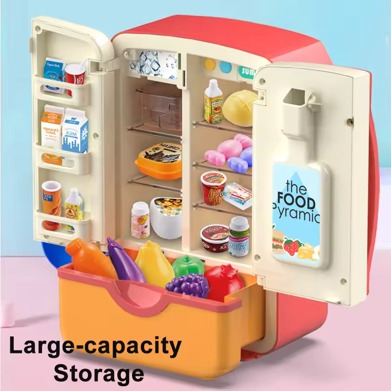 Make playtime more exciting with this multi-function toy fridge designed for kids’ pretend kitchen adventures. This interactive refrigerator features realistic light and sound effects, allowing children to enjoy an engaging and lifelike play experience.