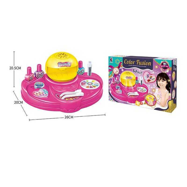The Color Fusion Nail Art Studio Set offers children an exciting way to express their creativity and style. Designed to provide a realistic beauty salon experience, the set includes nail polishes, glitter powder, gems, and a mini nail dryer. Kids can create beautiful nail art, mix and match different decorations, and enjoy hours of imaginative fun. The dryer adds an interactive element, making the experience feel more real and enjoyable. Made from durable, non-toxic materials, this playset ensures safety and reliability during playtime. Its compact size makes it easy to store and handle, perfect for both solo and group activities. Beyond entertainment, it helps children enhance hand-eye coordination, focus, and creativity while engaging in pretend play. Ideal for birthdays, holidays, or everyday play, this nail art studio is a perfect gift choice for kids who love fashion and hands-on creative activities