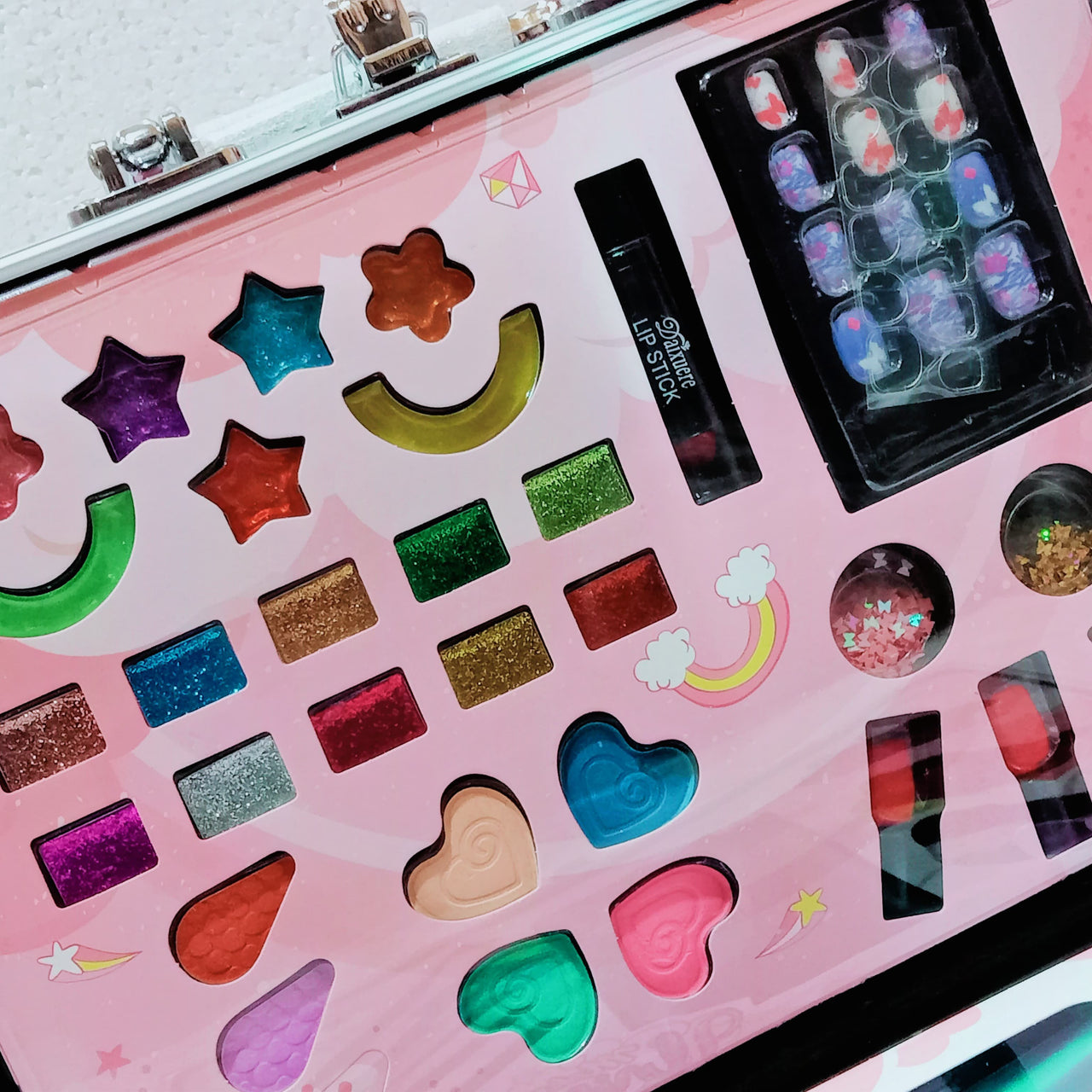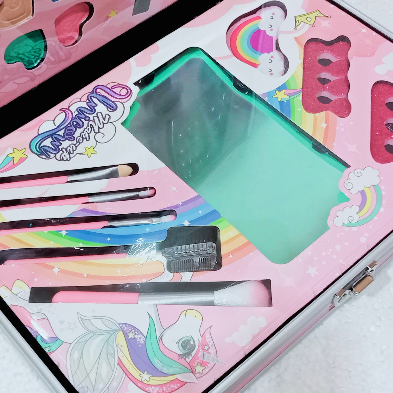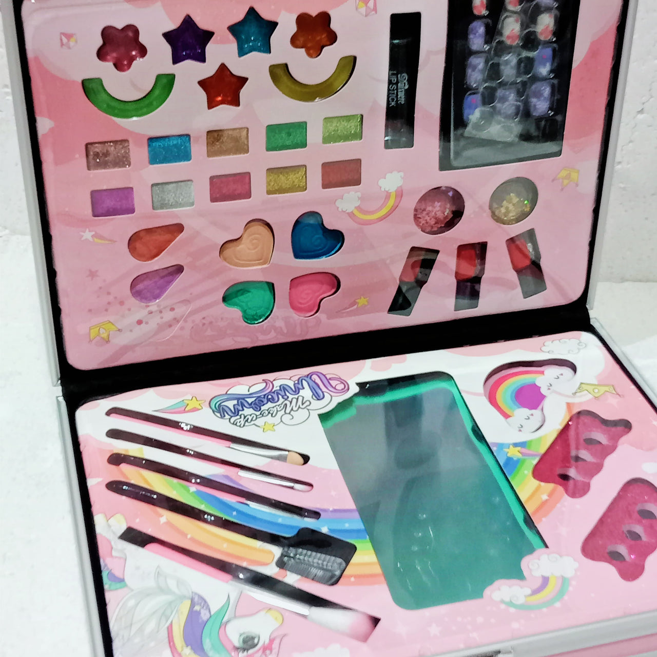 Let your child’s imagination sparkle with the Unicorn Makeup Set! This magical cosmetic kit comes in a charming unicorn-themed suitcase, packed with colorful makeup essentials designed especially for little ones. Ideal for ages 3 and up, it includes a vibrant collection of lip glosses, eyeshadows, blushes, nail polishes, and glitter powders in fun shapes like hearts and stars. The set also features safe makeup brushes, tools, and pretend accessories – perfect for creative role play, parties, or just having fun at home. Everything is neatly organized in a sturdy, portable case that kids will love carrying around. It’s not just a toy – it’s a complete makeup experience that promotes creativity, self-expression, and hours of imaginative play