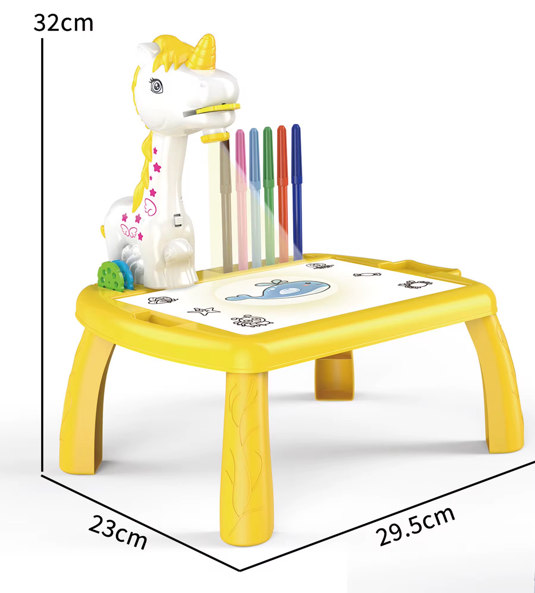 Kids Easel Projection Painting Desk, Chalk Board, White Board